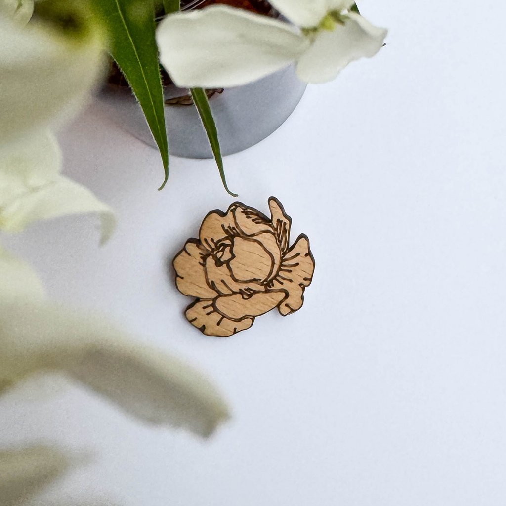 Drevená brošňa - pivonka